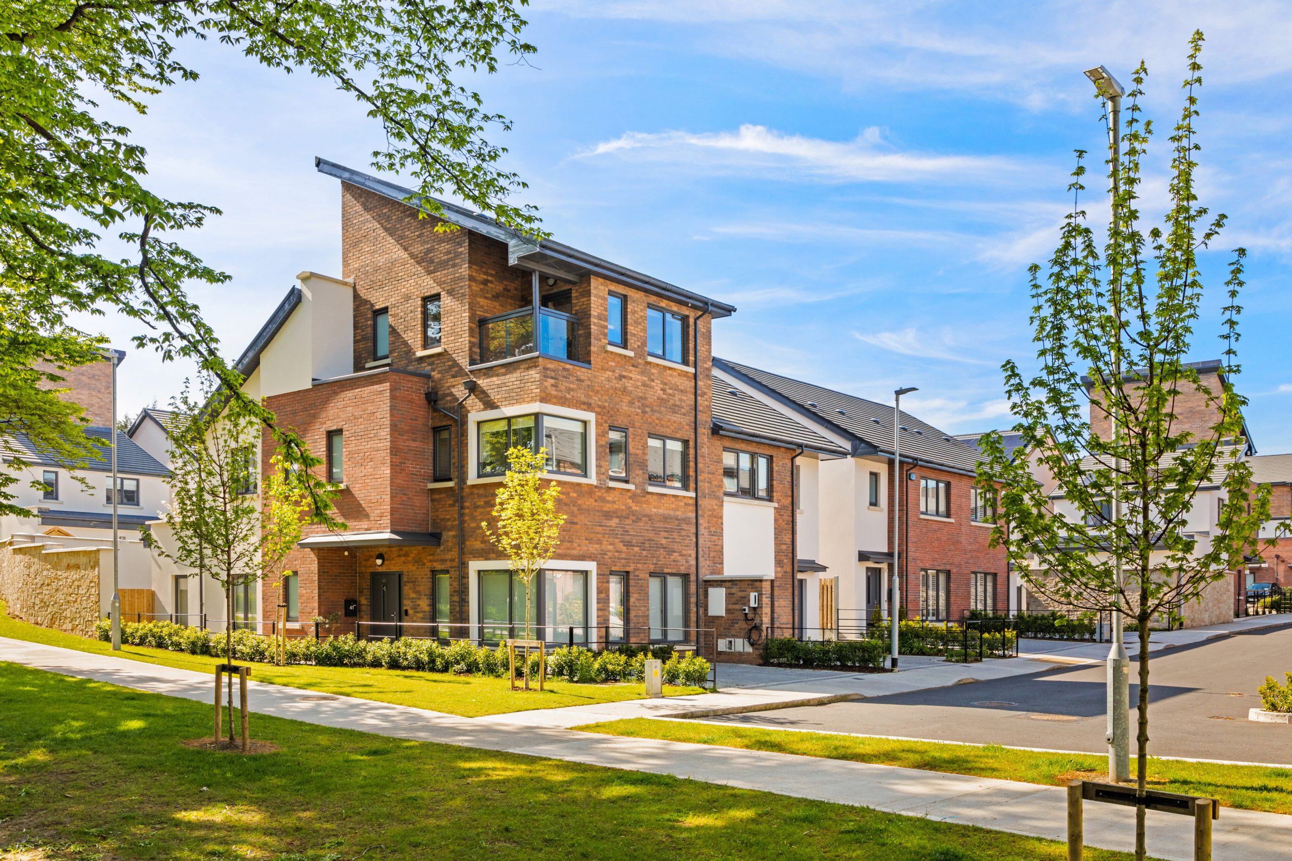 Extensive green spaces, children’s play areas, and pedestrian-friendly design create a genuine sense of community while maintaining excellent connections to Dublin city center and the N11 motorway.